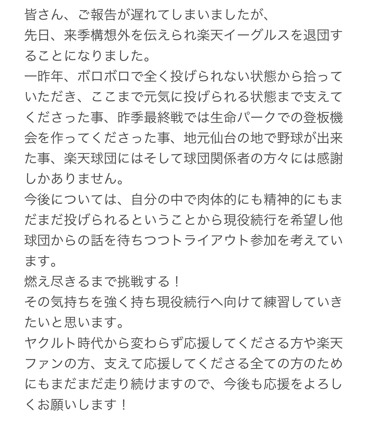 楽天戦力外の由規がBCリーグ埼玉武蔵に入団 球団が正式に発表